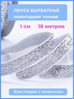 Бархатная лента тонкая упаковочная для подарков новогодняя 1