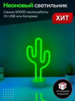 Светильник-ночник неоновый Кактус USB