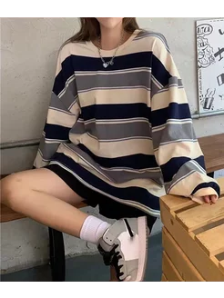 Лонгслив кофта оверсайз y2k свитшот корейский в полоску