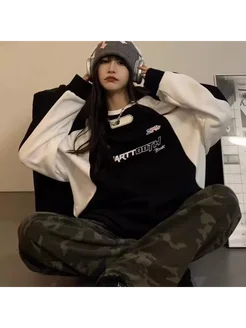 Лонгслив оверсайз с принтом, корейская кофта y2k