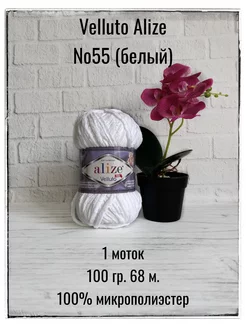 Пряжа плюшевая для вязания Velluto 55 белый 1 моток