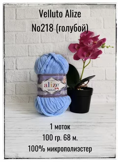 Пряжа плюшевая для вязания Velluto 218 голубой 1 моток