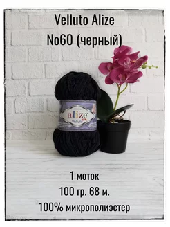 Пряжа для вязания крючком Velluto 60 черный 1 моток