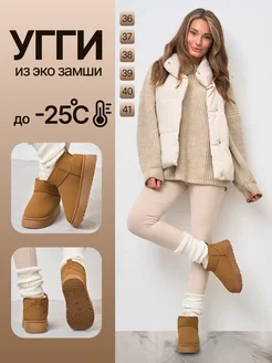 Угги утепленные замшевые на платформе низкие