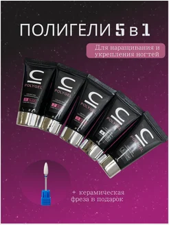 Набор полигелей 5в1 для наращивания и моделирования ногтей