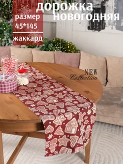 Дорожка на стол новогодняя красная из жаккарда с люрексом