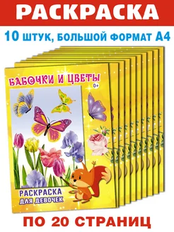 Раскраска для девочек 10 шт. формат А4 Бабочки и цветы