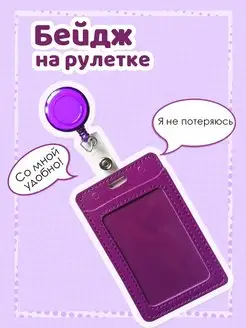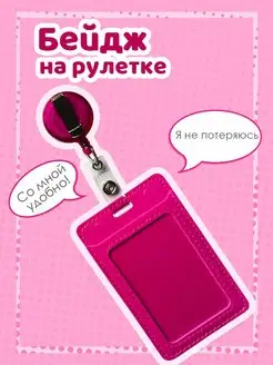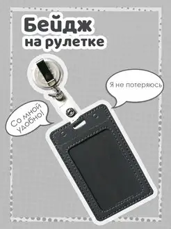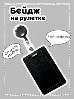 Бейдж для пропуска с рулеткой белый пластиковый на шею
