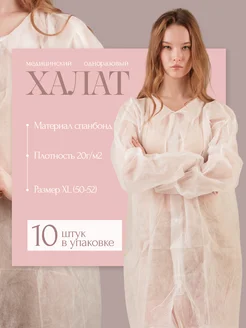 Халат одноразовый медицинский спецодежда 30 гр м2 XL 10 шт