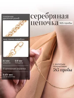 Серебряная цепочка на шею 925 "Двойной ромб"