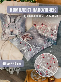 Набор декоративных новогодних наволочек с аппликацией, 2 шт