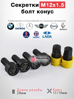 Болты-секретки М12x1.5 длина резьбы 28мм конус