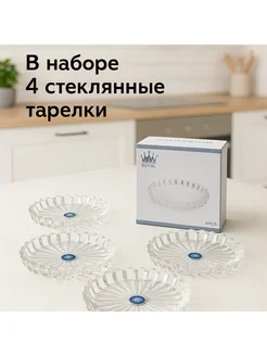 Набор стеклянных блюдец 4 шт 140 мм для закусок, десертов и…