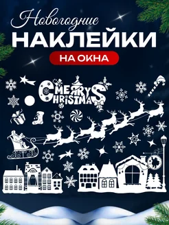 Новогодние наклейки на окна на двери двухсторонние 2026