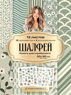 Бумага для скрапбукинга 12 шт. - Шалфей 30 x 30 см