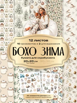 Бумага для скрапбукинга 12 шт. - Бохо Зима 20 x 20 см