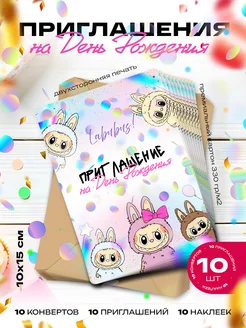 Приглашение на ДР - День Рождения - Лабубу Labubu - 10 шт