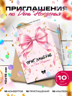 Приглашение на ДР - День Рождения - Бантики - комплект 10 шт