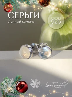Серьги из серебра с лунным камнем пусеты гвоздики
