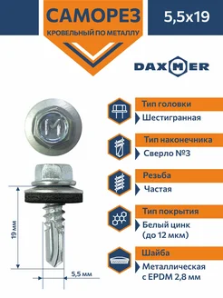 Саморез 5,5х19 кровельный по металлу цинк (250 шт)