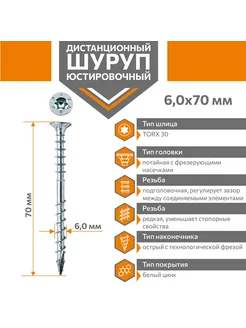 Шуруп дистанционный юстировочный Torx 6,0х70 (100шт)