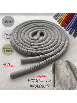 Шнурок для одежды 150см серый 6мм металл наконечн