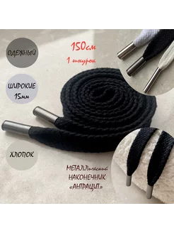 Шнурок для одежды 150см черный ХЛОПОК широкий 15мм (1 шт)