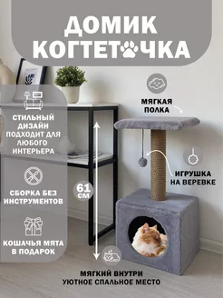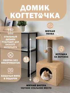Когтеточка столбик с домиком Домик для кошек и собак с игруш…