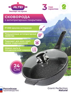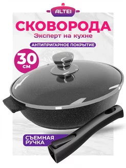 Сковорода с крышкой 24 26 28 30 см, со съемной ручкой