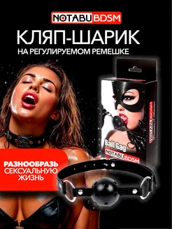 Черный кляп-шарик на регулируемом ремешке с кольцами