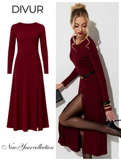 Платье трикотажное с разрезом праздничное