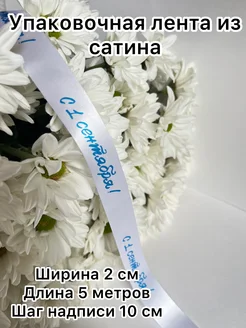 Упаковочная (сатиновая) лента "С днем знаний" 5 метров