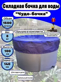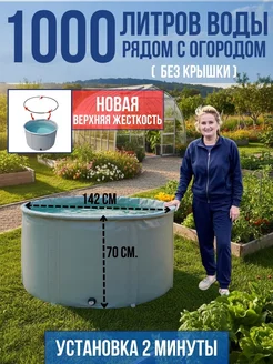 Складная емкость для воды 1000 л, h=100 см, с крышкой