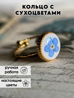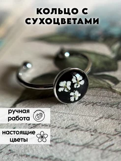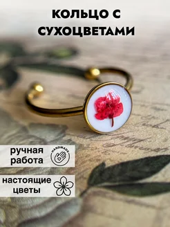 Кольцо регулируемое из эпоксидной смолы с сухоцветами