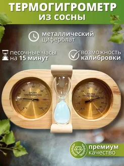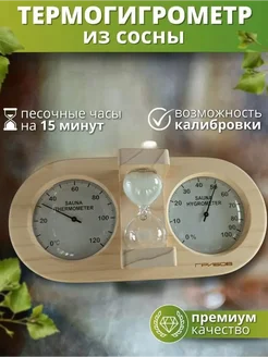 Термогигрометр с песочными часами из сосны для бани и сауны
