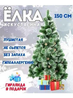 Елка искусственная 150см с шишками и снегом