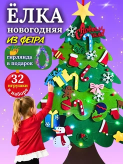 Елка из фетра с игрушками на липучка