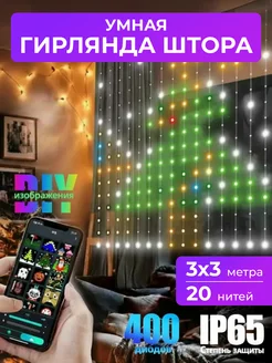 Умная гирлянда штора с пультом 3x3светодиодная RGBIC