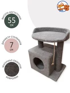 Когтеточка домик с овальной полкой Лайт, ковролин, 50 см,сер