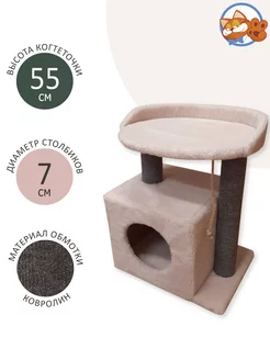 Когтеточка домик с овальной полкой Лайт, ковролин, 50 см,беж