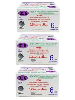 Иглы для инсулиновых инжекторов 31g 0,25х6мм 100 шт - 3 уп