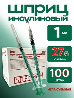 Шприц инсулиновый 1 мл 27g со съемной иглой-100 штук