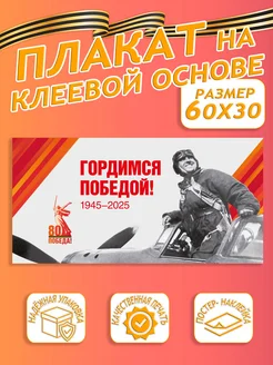 Плакат-наклейка, 9 Мая, 80 лет победы, Гордимся 1945-2025