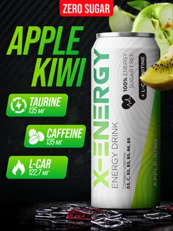 Энергетик без сахара яблоко киви, 450мл, 12шт