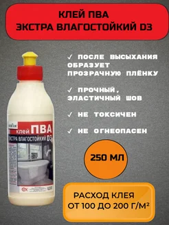 Клей пва D3 экстра влагостойкий 250 мл