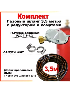 Комплект Шланг газовый 9мм, 3,5м. c редуктором РДСГ-1-1.2