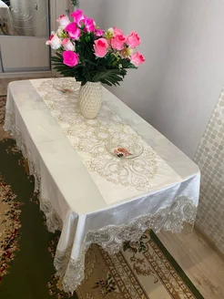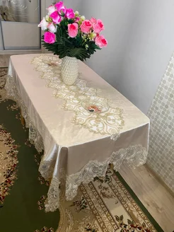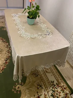 Скатерть на стол 150х220см Велюра с брюссельской кружевой