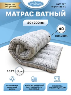 Матрас ватный 80х200 см беспружинный на диван кровать