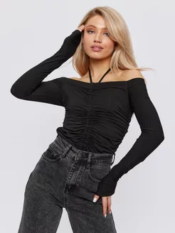 Лонгслив с открытыми плечами кофта нарядная драпировка
