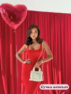 Сумка женская на плечо сумка из бусин с ручкой